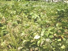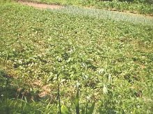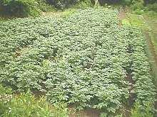 (6月30日) 農薬等の散布を行っていないので当然ですが,毎年このような状態です。でも立派にじゃがいもはできていますよ。 |