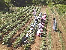 子どもたちが余裕で歩けるように間隔を広くしていますが,かなり踏み固められて固そうな畑になっています。 |